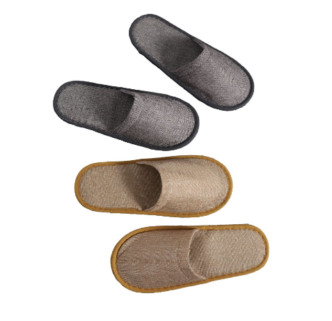 Pantufa de linho eco amigável com logotipo personalizado, chinelos interiores confortáveis para hotel, 2023